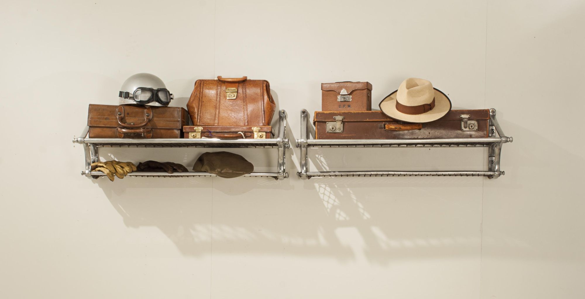 These polished racks retain their original character and charm and would have originally been mounted above a passenger's seat in a train carriage. A great piece of locomotive history, they now make striking and practical storage for the home-ideal for hallways, kitchens, man caves or garages as unique wall-mounted shelving.